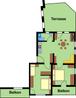 1 Schlafraum mit Doppelbett und Waschbecken, 1 Schlafraum mit Doppelbett und einem 1 Einzelbett, 1 Schlafcouch, 1 Wohnzimmer, Küche, Dusche/Waschbecken/WC, 2 Balkone südseitig und große Terrasse, Wohnfläche ca. 84m².